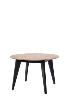 Stół ST-1703 fi 1150/1550x760 rozkładany dostępny jest w kolorach: blat - Dąb Wotan, nogi - Czarny półmat 25 waga: 33.8 kg